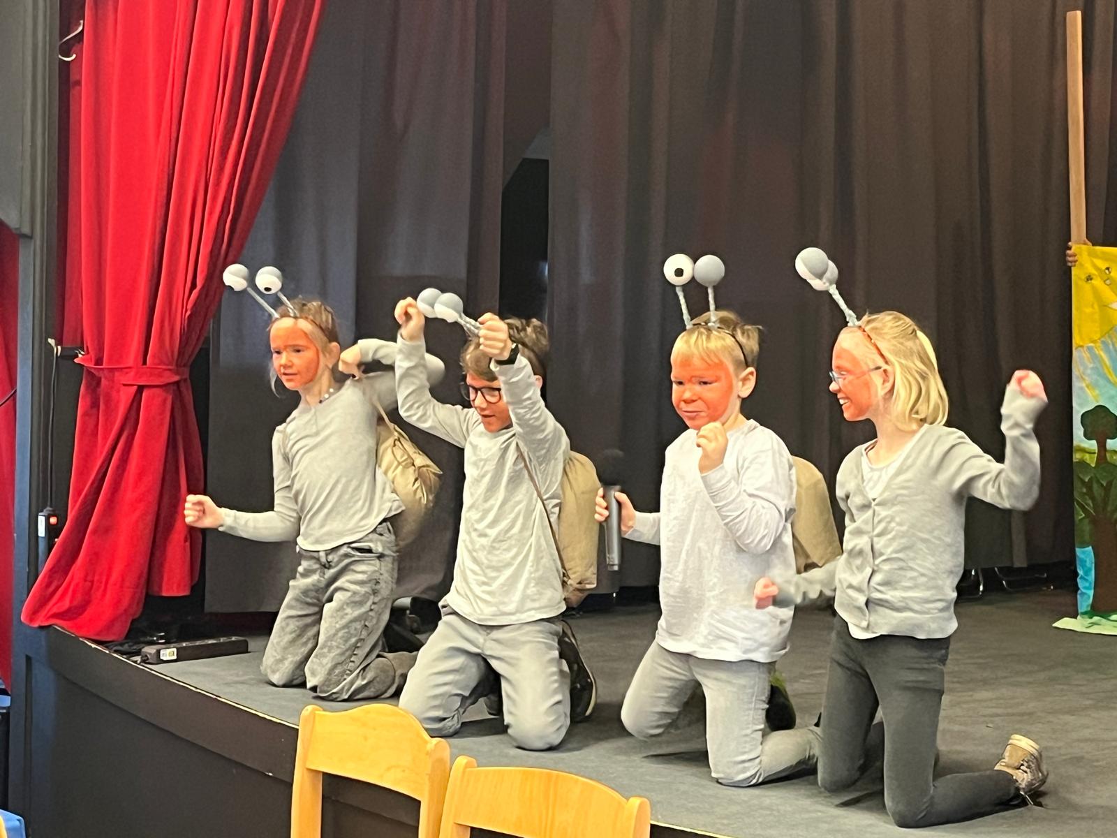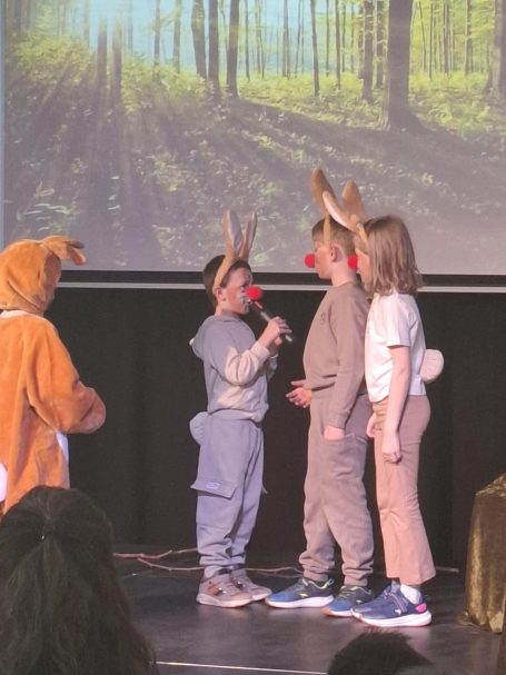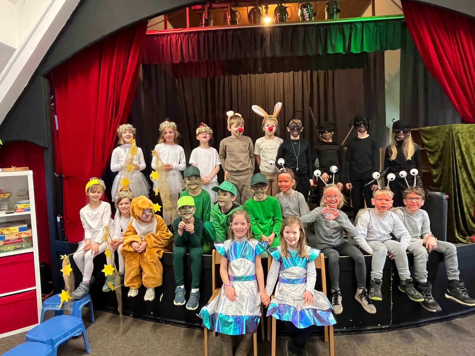Solch ein Mammutprojekt benötigt viel Unterstützung und Engagement. Daher möchte die Schule sich ganz herzlich bei den Eltern der Klasse 2a bedanken, die mit viel Liebe und Kreativität die Kostüme gestaltet, die Kinder geschminkt und tatkräftig bei der Organisation geholfen haben. Ein weiterer Dank geht an den Hausmeister der Sekundarschule, Christoph Keizers, für das Stellen der Stühle und an die Sekundarschule selbst: für das Bereitstellen des Forums.