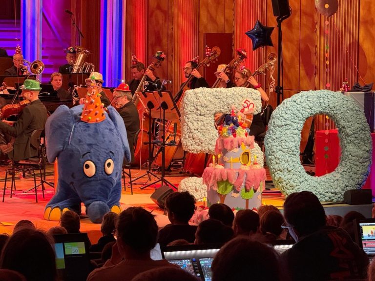Nun durften die musikbegeisterten Kinder einmal zuhören – und das gleich bei einem riesigen Event. Prominenz war garantiert. "Die Welt ist elefantastisch – sie ist wunderschön!", mit diesem Lied begrüßten Anke Engelke und André Gatzke die Kinder zum 50. Geburtstag des blauen Elefanten. Bevor der blaue Elefant allerdings die Bühne betrat, musste die Geburtstagsparty erst einmal vorbereitet werden.