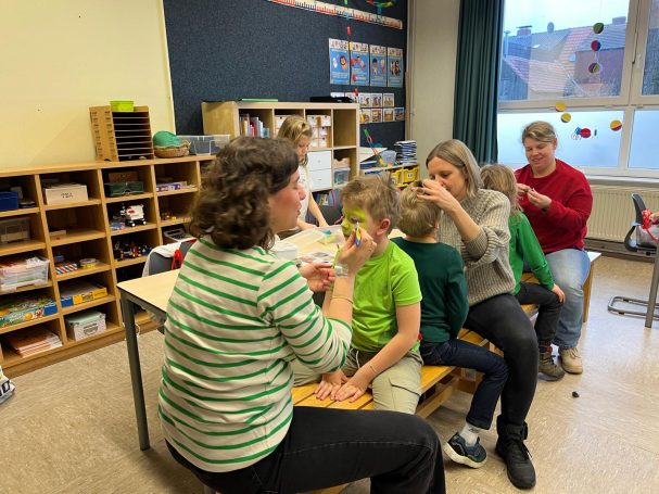 Als für die ersten Kinder der Unterrichtsvormittag endete, konnte die niederländische Delegation sehen, wie familiennah sich der anschließende Ganztag bzw. die Betreuung gestaltet. Das Ankommen der Kinder in ihren Gruppen erlebten sie als herzlichen und altersgerechten Übergang. Zuerst berichteten die Kinder vom Vormittag und genossen eine kleine Entspannungsphase. Beim Mittagessen holte man sich dann neue Kraft für die zweite Tageshälfte. Nach etwas Bewegung war es Zeit für die Hausaufgaben, die vor den Freizeitkursen und dem Öffnen der Themenräume in Ganztag und Betreuung auf dem Plan standen.